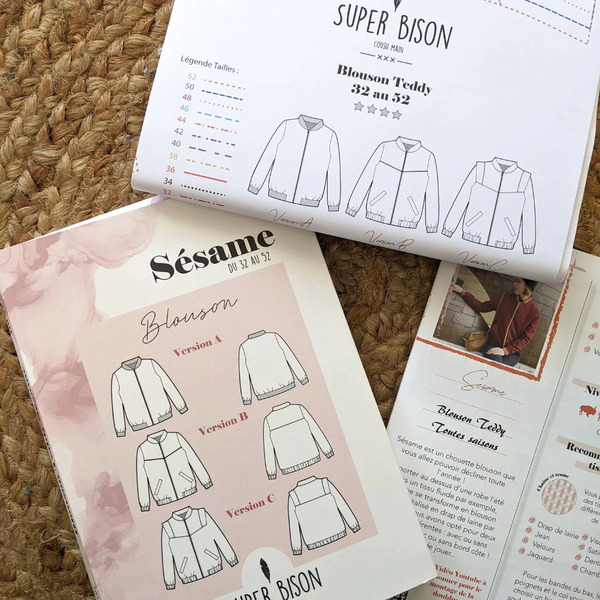 Coffret comprenant la planche de patron à taille réelle gradée du 32 au 52 en couleur, le livret explicatif avec le pas à pas illustré en couleur également.